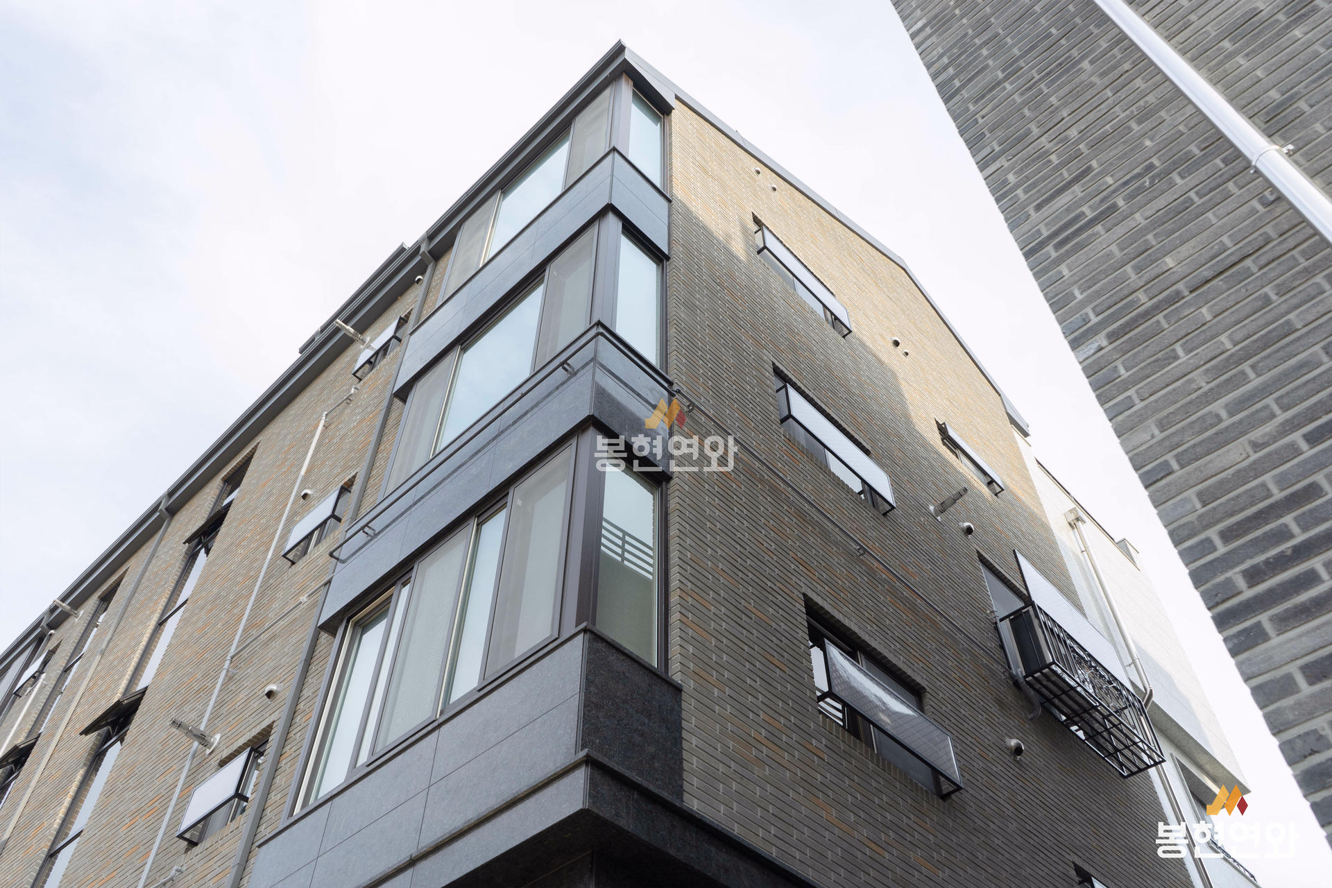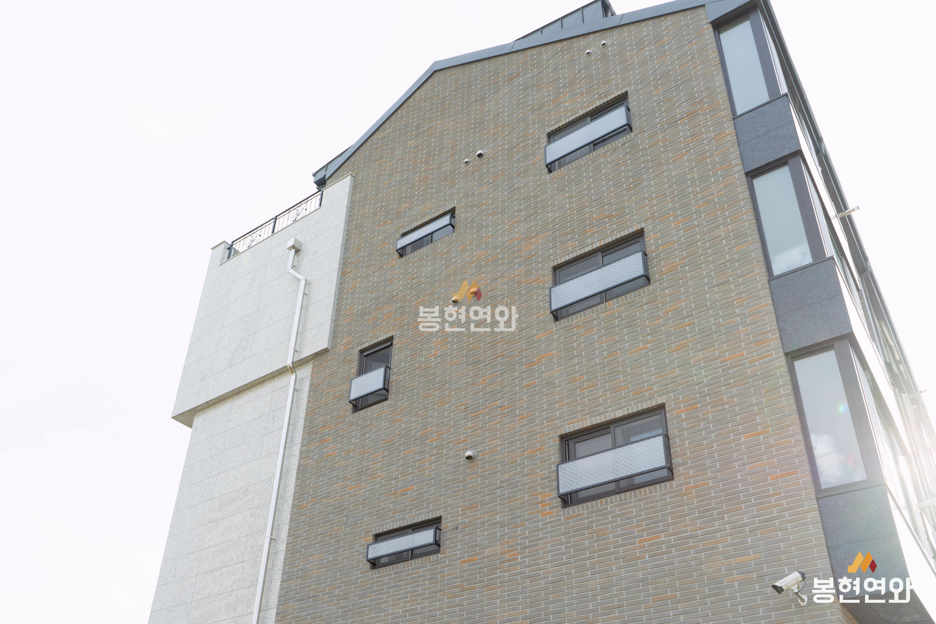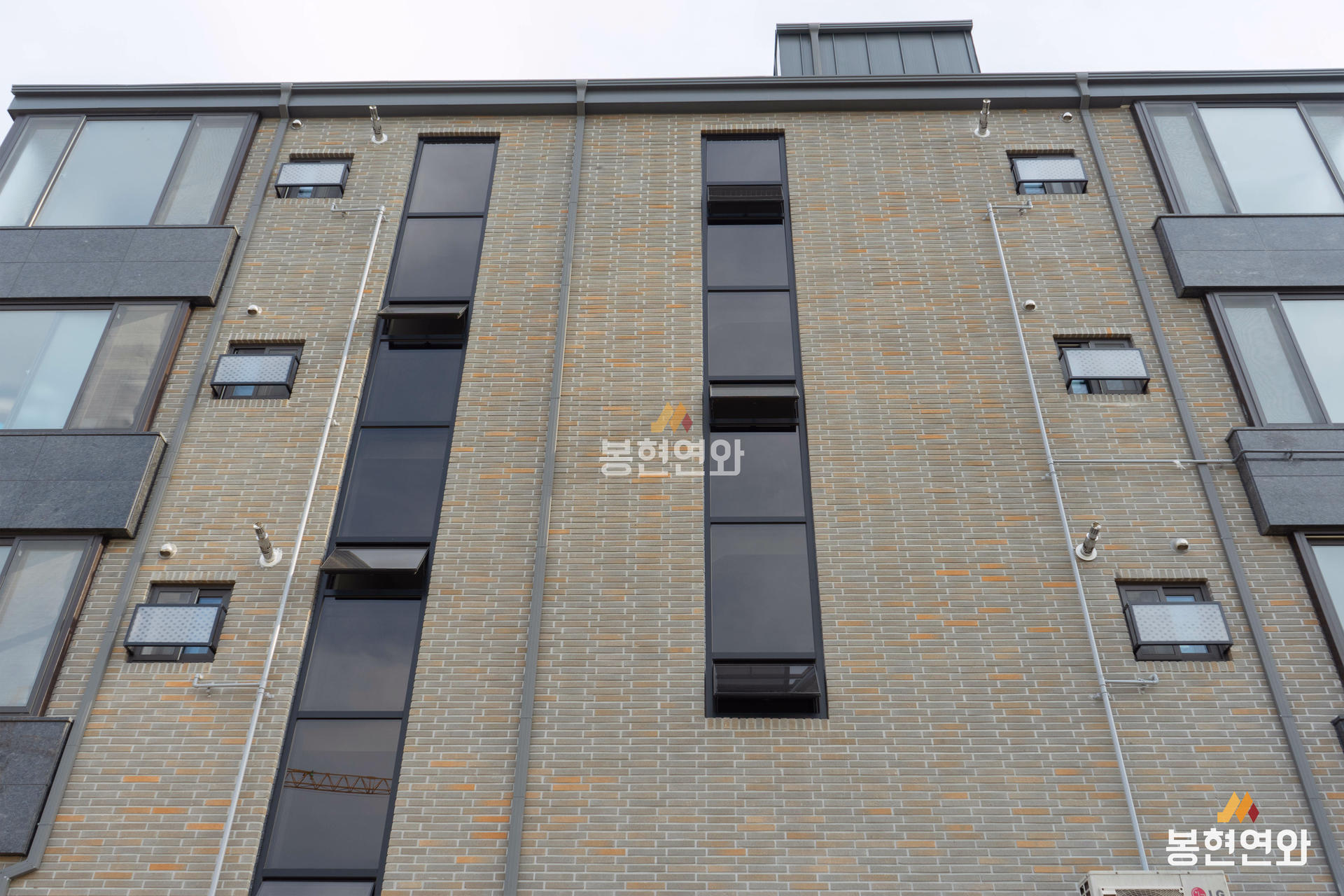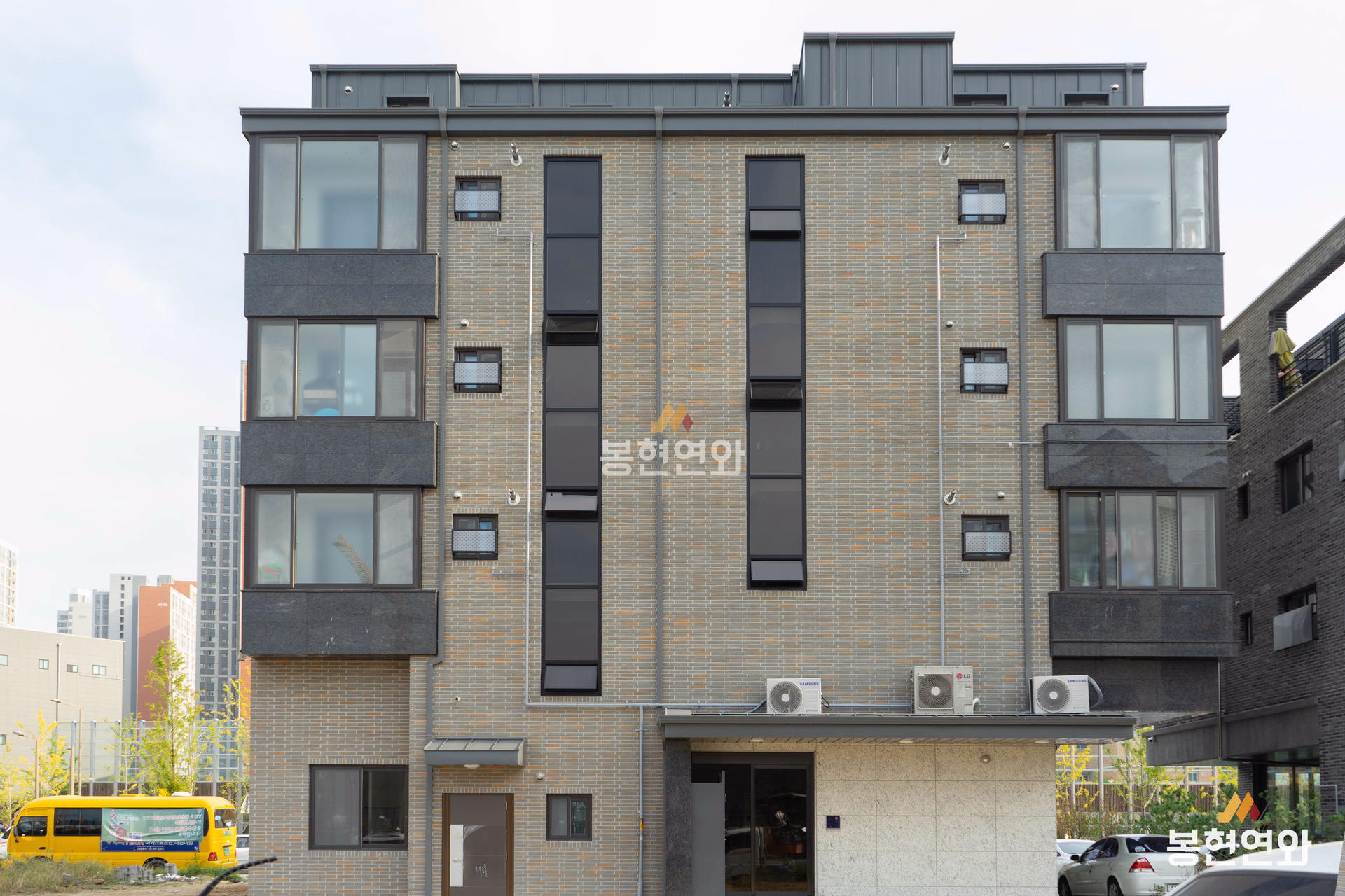 회색 전돌에 노란색 포인트가 자연스럽게 혼합된 고급벽돌이며, 롱슬림 사이즈 제품이 적용되어