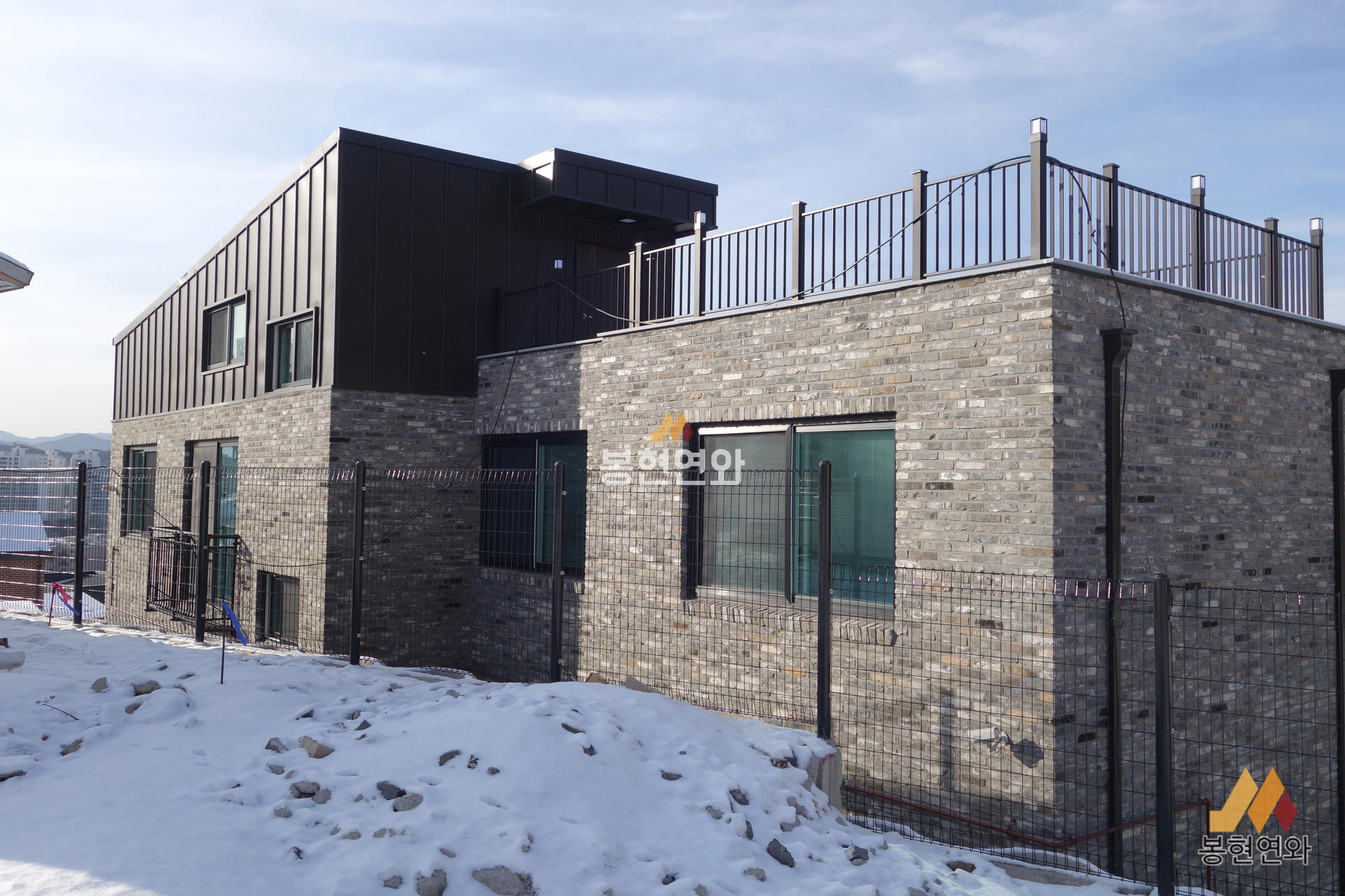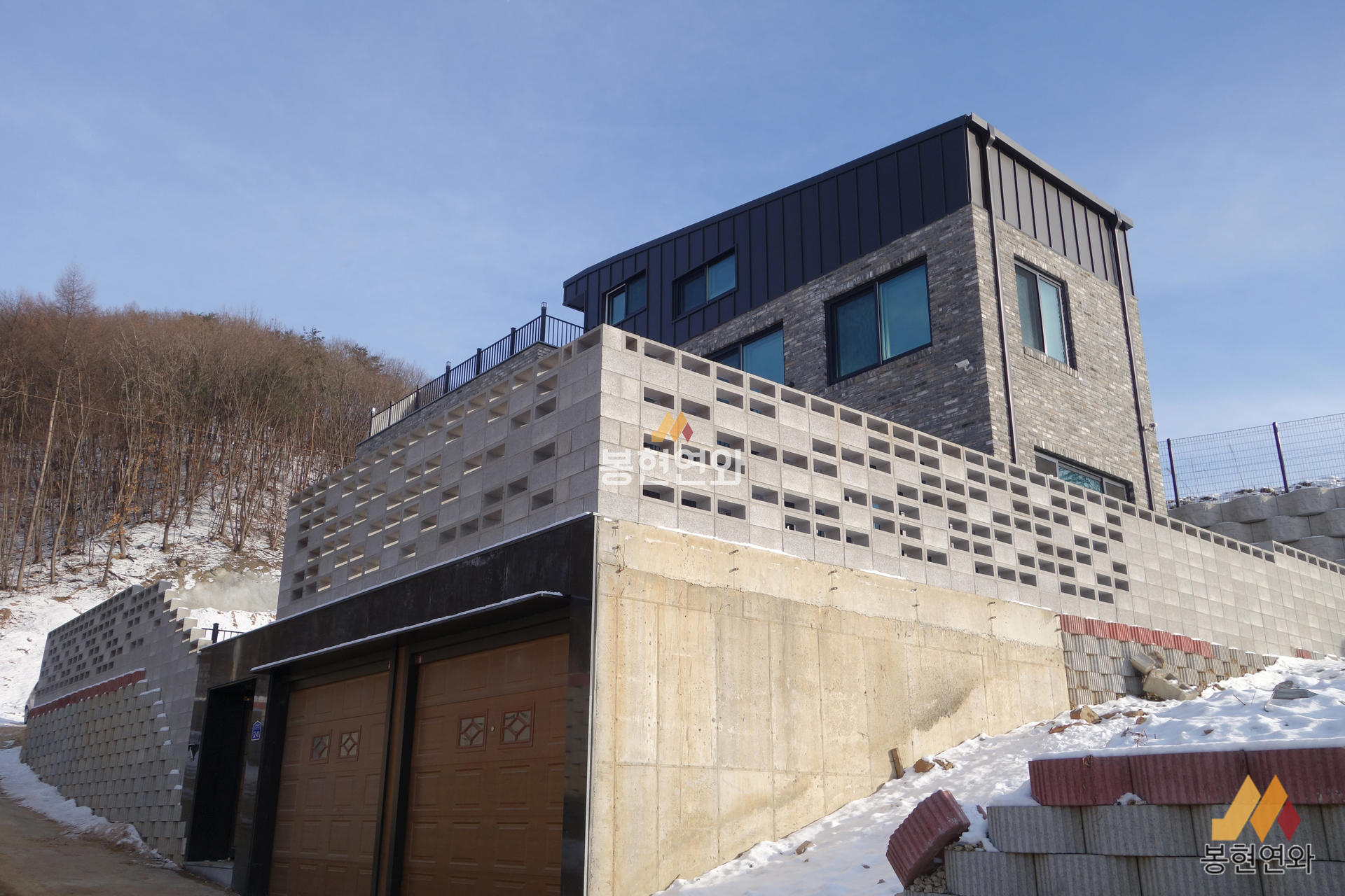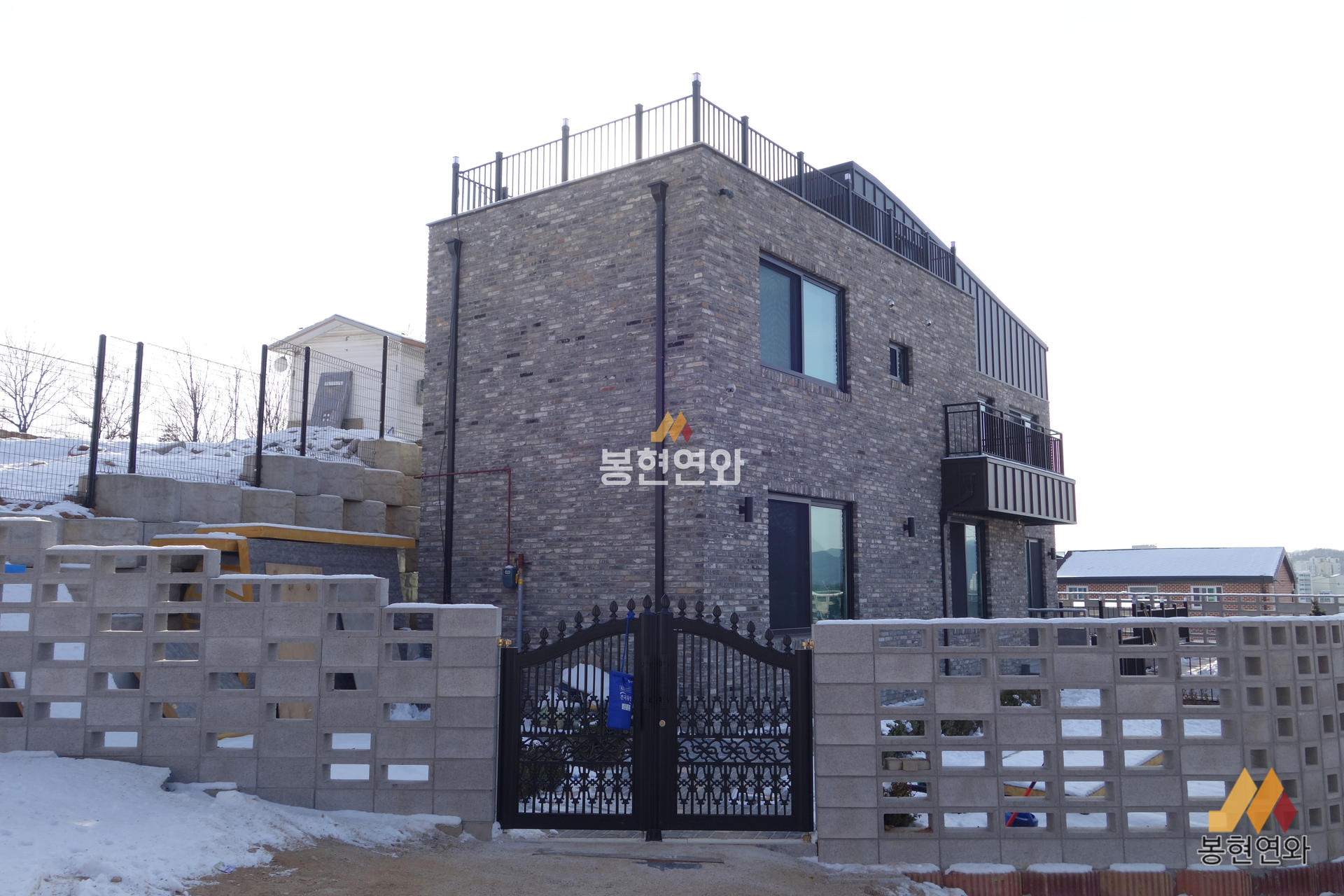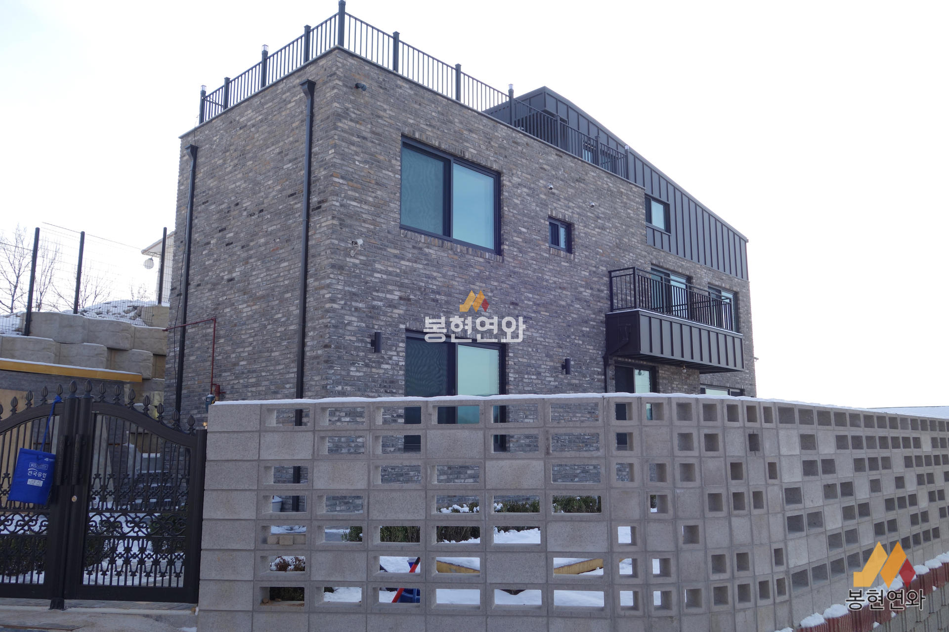 명품 청고벽돌 240 제품으로 외벽공사 후 디자인블럭으로 담장을 조성하여 트랜디한 분위기를 잘 표현했습니다.